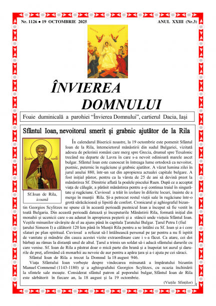 Foaie duminicală a Parohiei „Învierea Domnului” Iași Nr. 1126/19.10.2025